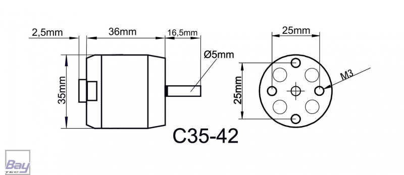 14 poliger BL-Außenläufermotor mit Ø 35 mm