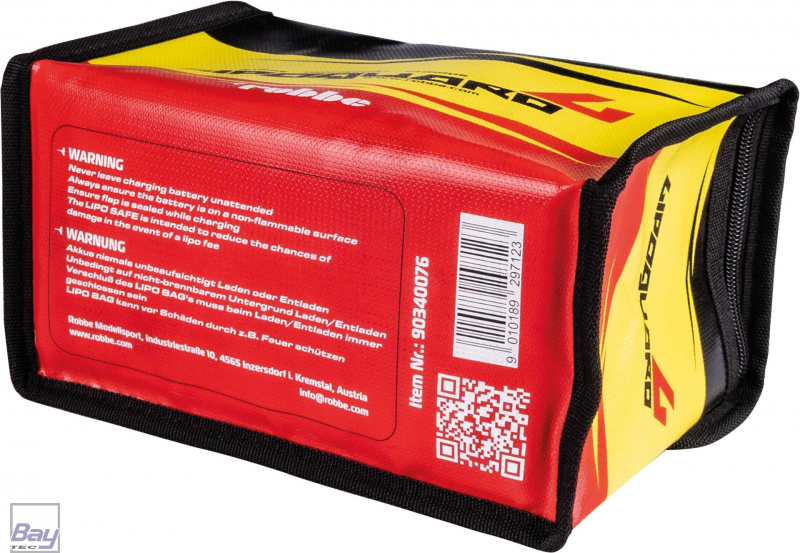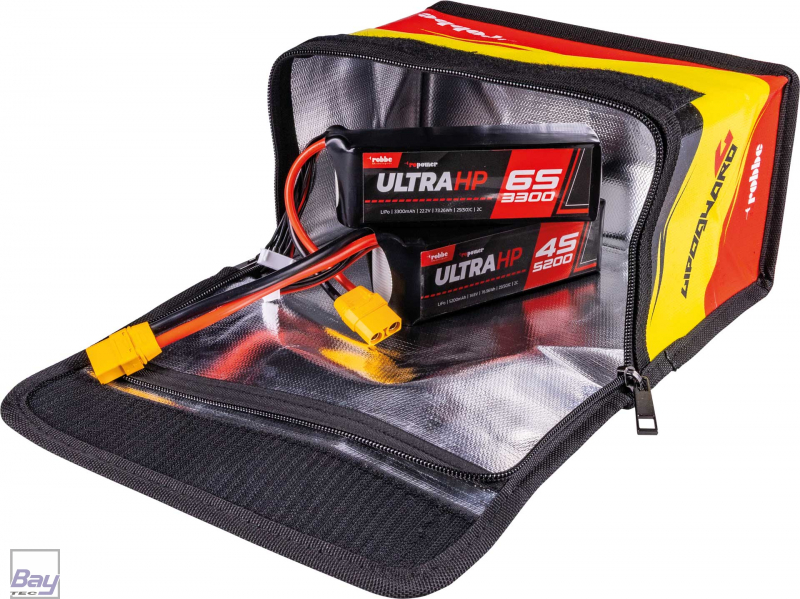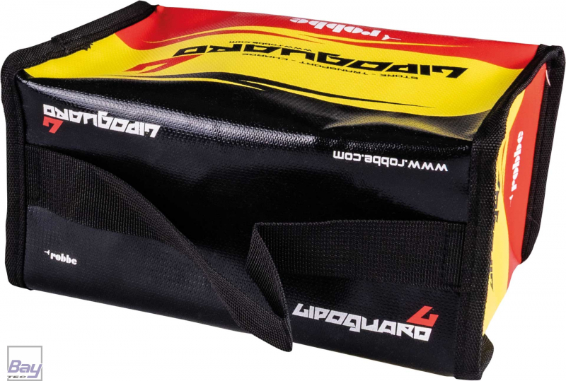 Lipo Schutztasche zur sicheren Aufbewahrung von Lipo Akkupacks. Das brandhemmende Spezialgewebe ("liquid silicone"), welches im Vergleich zu anderen Produkten, deutlich höhere Widerstandsfestigkeit aufweist, verhindert offene Flamme und hält für kurze Zeit Hitze nach außen ab. Hinweis: Diese Schutztasche ist nicht dafür vorgesehen, Rauchentwicklung zu verhindern, oder ist auch nicht dafür vorgesehen längere Zeit Hitze nach außen abzuhalten. Im Falle eines Akkubrandes in der Schutztasche ist diese nicht mehr wiederverwendbar und muss entsorgt werden! Mit Klettverschluss und Reißverschluss verschließbar.