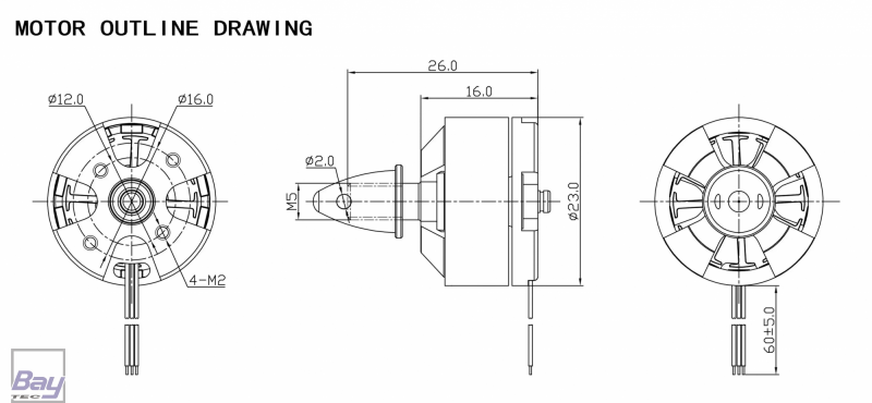 The DXW D1806/2400 is a small motor with a 5mm shaft. The motor is suitable with a 5-7" propeller and a 2-3S Lipo battery.