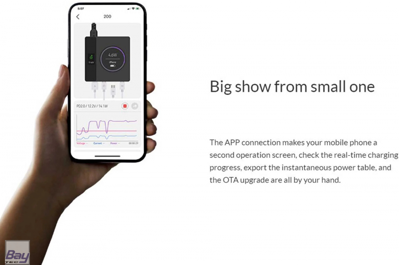 Große Show von Anfang anDie APP-Software macht Ihr Mobiltelefon zu einem zweiten Betriebsbildschirm. Sie können den Echtzeit-Ladevorgang überprüfen, die momentane Leistungstabelle exportieren und das OTA-Upgrade durchführen.