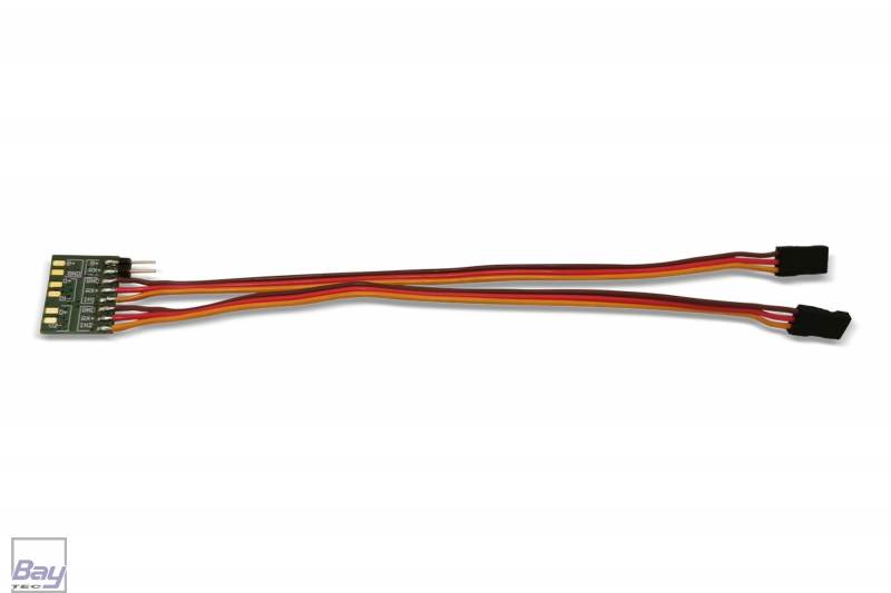 Wahlweise interne oder externe Spannungsversorgung Das Modul kann entweder direkt über die Empfängerspannung betrieben oder über eine externe Stromquelle versorgt werden. Diese Flexibilität ermöglicht den Einsatz in verschiedensten Modellkonfigurationen.