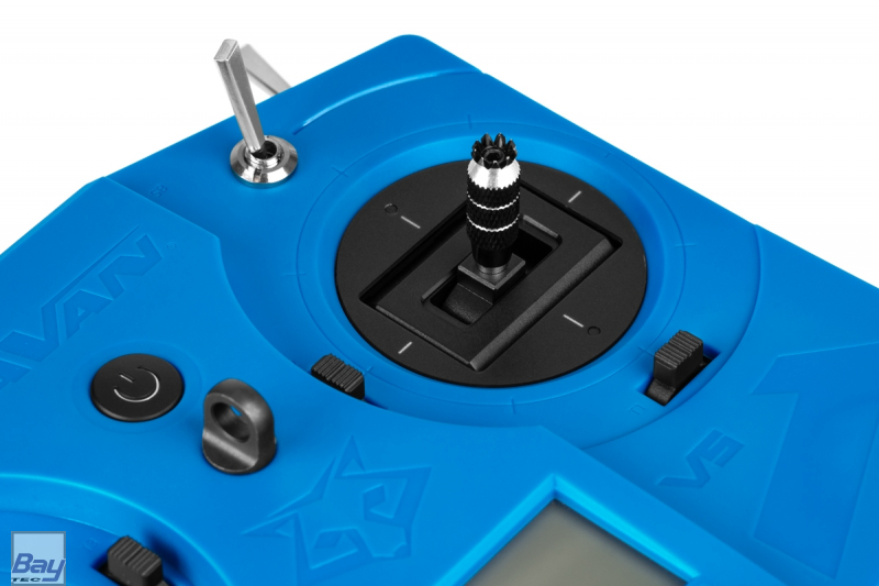 Das Gehäuse des Senders ist robust und liegt perfekt in der Hand. Die texturierten Griffe an den Seiten und auf der Rückseite des Gehäuses sorgen für einen festen, bequemen und sicheren Halt, wobei alle Bedienelemente griffbereit sind. Selbstverständlich lassen sich auch die Stärke der Neutralisierungsfedern und die Arretierung einstellen, um den Modus und die Reaktion ganz nach den eigenen Wünschen anzupassen.