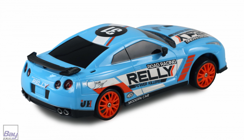 Modell einer japanischen Race/Drift Ikone im Maßstab 1:24 als RTR Modell. Die montierten Drift Reifen erlauben extreme Driftwinkel auf jedem glatten Untergrund und die Front LED Belechtung unterstreicht den sportlichen Charakter des Modells zusätzlich. Ebenfalls im Lieferumfang sind 4 Gummireifen inkl. Felgen für coole Rennaction auf engstem Raum. Drifte mit deinen Freunden um die mitgelieferten Pylonen oder rase mit den Gummireifen präzise um jedes Hindernis. Egal was Du machst, Spaß ist mit diesem tollen Set garantiert und durch das 2,4GHz Übertragungssystem kannst Du auch gleichzeitig mit mehreren Freunden fahren.