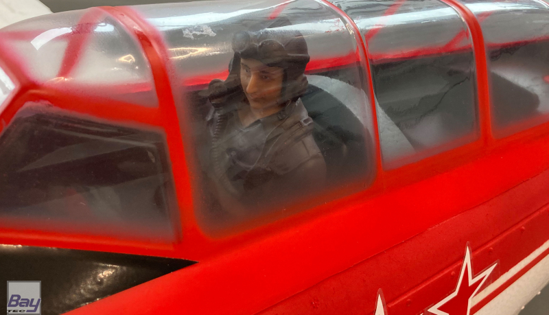 Die AMXFlight YAK-11 ist ein sehr schöner Scale Nachbau in der rot / weißen Lackierung mit allen Aufklebern, die dem Original entsprechen. Die Optik und die Qualität des Modells sind herausragend – der Flieger überzeugt auf Anhieb durch seine Größe mit einer Spannweite von 1450mm, dem massigen Rumpf und dem riesigen 16 x 6E Propeller. Die YAK-11 kommt als PNP Variante aus der Box und alle Komponenten wie Servos, Motor, Regler, Fahrwerk und Landeklappen (Spreizklappen) sind bereits fertig eingebaut. Der Zusammenbau beschränkt sich somit lediglich auf das Verschrauben des Leitwerks und das Anbringen der 2-teiligen Hauptfläche. Alle Komponenten sind geschraubt. Lediglich die Scale Antenne hinter dem Cockpit muss eingeklebt werden. Der voluminöse Rumpf ist für die Aufnahme von 6S LiPo Akkus mit einer Kapazität von 5000mAh bestens geeignet und der angegebene Schwerpunkt des Modells ist damit einfach einzustellen. Die Kabinenhaube ist sehr großzügig gestaltet und erlaubt ein sauberes Arbeiten im Inneren des Rumpfes. Das Fahrwerk wurde mit 5mm Materialstärke und einer aktiven Dämpfung versehen – es hält somit dem Eigengewicht des Modells wie auch unebenen Start- und Landeplätzen problemlos stand. Die Spreizklappen vermindern die Fluggeschwindigkeit deutlich, um das Landen so einfach wie möglich zu bewerkstelligen.