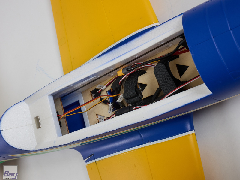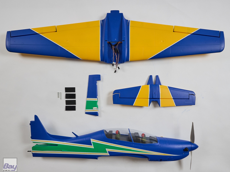 Leistungsstarker Antrieb Angetrieben wir die Tucano durch einen leistungsstarken 900KV Brushless-Außenläufer mit einem 40A Flugregler. In Kombination mit einem 3 oder 4S LiPo-Akku verfügt das Modell über ausreichend Leistung für spektakuläre Flugmanöver.