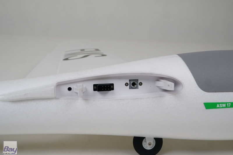 Die Flächenverbinder aus CNC-gefrästem Aluminium werden dabei einfach in den Rumpf reingeschraubt. Die Tragflächen sowie Höhen- und Seitenleitwerk sind mit einem „Quick-Release“-System konstruiert, wobei Flächen und Leitwerke einfach „eingeschnappt“ werden, wodurch das Modell in wenigen Sekunden vollständig montiert oder zerlegt ist.