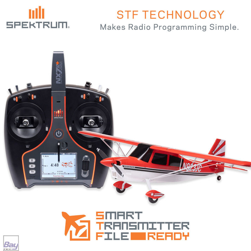 Dieses BNF-Flugzeug ist mit einem Empfänger ausgestattet, der über die Smart Transmitter File (STF) Funktion verfügt. Damit wird die Programmierung deines Senders so einfach wie ein paar Klicks. Sobald du deinen Sender mit einem STF-fähigen Flugzeug bindest, werden alle Programmierparameter automatisch vom Empfänger heruntergeladen. Schalterzuweisungen, Rates, Expo, Telemetrie und Sprachausgaben konfigurieren sich von selbst. Keine langen Schritt-für-Schritt-Anleitungen. Keine ständigen Anpassungen. Einfacher Knopfdruck – und du bist schneller in der Luft!