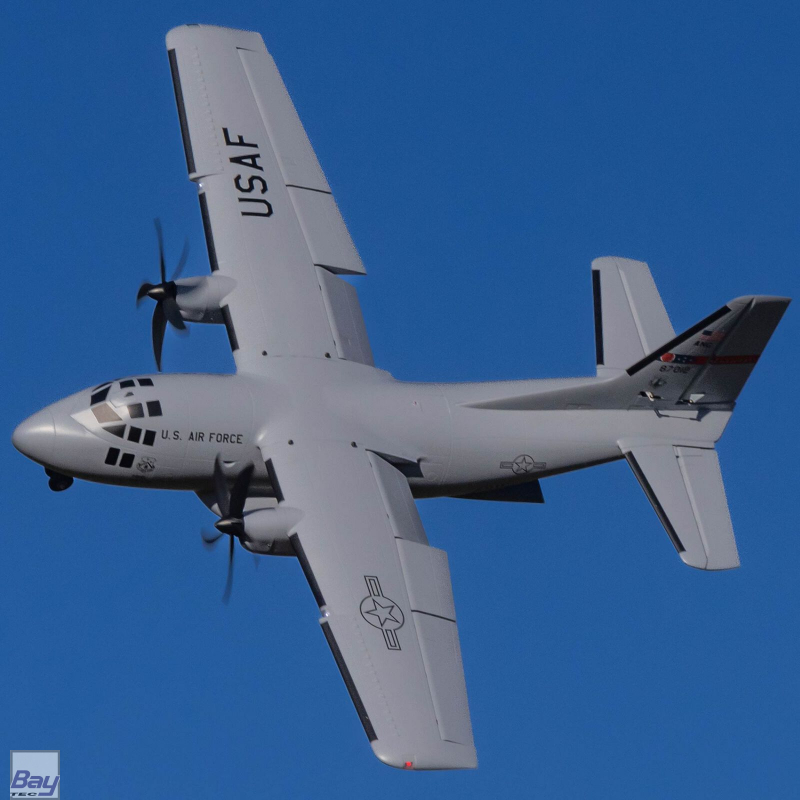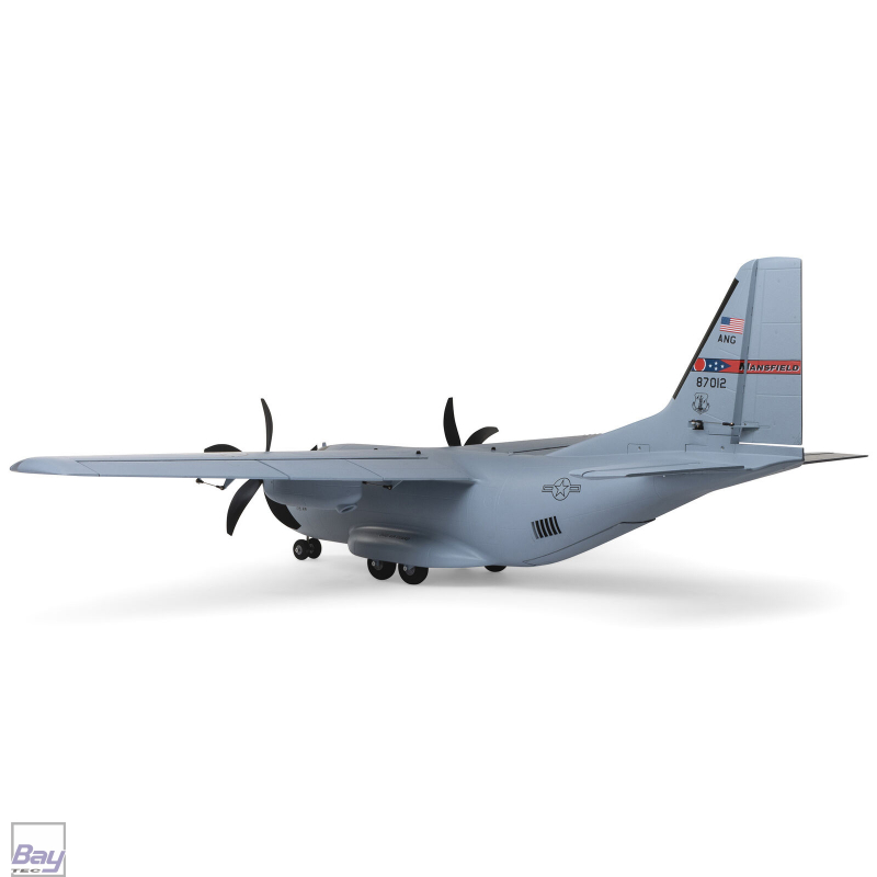 Es sind acht werkseitig installierte Servos verbaut, darunter Servos mit Metallgetriebe auf allen Ruderflächen sowie ein Servo für die funktionale Frachttür, sodass du Nutzlasten in dem großen Laderaum transportieren und absetzen kannst. Die realistisch aussehende LED-Lande-, Navigations- und ACL-Beleuchtung wird vom Flugakku gespeist, sodass du von morgens bis abends fliegen kannst – von Hart- und Rasenpisten, oder im Schnee mit den mitgelieferten Skiern; oder von großen Teichen und Seen mit den optionalen Schwimmern (separat erhältlich). Du kannst auch die magnetische Nase abnehmen und eine GoPro® oder eine ähnliche Kamera für HD-Luftaufnahmen montieren, oder du installierst eine separate FPV-Kamera an dem großen oberen Deckel (Kameras/Ausrüstung separat erhältlich). Darüber hinaus kannst du die mitgelieferten Aufkleber zur Personalisierung der vollständig lackierten grauen Oberfläche mit Markierungen der Ohio Air National Guard, Air Force, Army, Coast Guard, Marines, Navy und anderen verwenden! Das Ergebnis von all dem ist die bisher leistungsfähigste, vielseitigste und unterhaltsamste Zweimot für ein breites Spektrum von fortgeschrittenen bis erfahrenen Piloten, die sich für vorbildgetreues oder sportliches Fliegen und sogar aggressiven 3D-Kunstflug interessieren.