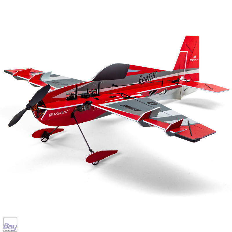 Der E-flite Eratix 3D FF (Flat Foamy) 860 mm bietet aggressive Kunstflug-, entspannte Sport- und gemütliche Langsamflugeigenschaften ähnlicher Modelle – ohne den ganzen Aufwand, Komponenten zu kaufen und zu bauen! Er lässt sich einfach zusammenschrauben und -klicken und kann in kürzerer Zeit flugbereit sein, als zum Aufladen eines Akkus benötigt wird - im Vergleich zum stundenlangen Zusammenbau konventioneller Kreuzrumpfmodelle mit Klebstoff und Klebeband. Seine leichte und dennoch extrem haltbare EPP-Flugzeugzelle wird größtenteils werkseitig zusammengebaut und umfasst ein werkseitig installiertes Antriebssystem und Servos. Der 3S-kompatible brushless Motor ist mit einem exklusiven Spektrum Avian Smart ESC abgestimmt. Die BNF Basic-Version ist mit einem AR630-Empfänger ausgestattet, der Echtzeit-Telemetriedaten und AS3X- und SAFE Select-Technologien bietet. Der Eratix ist klein und leicht genug, um drinnen in Turnhallen und ähnlichen Räumen oder draußen in Höfen, Parks und auf Sportplätzen geflogen zu werden, was ihn zu einer vielseitigen Ergänzung der bestehenden Flotte für eine Vielzahl von Piloten macht!