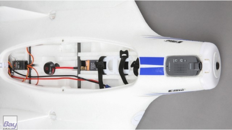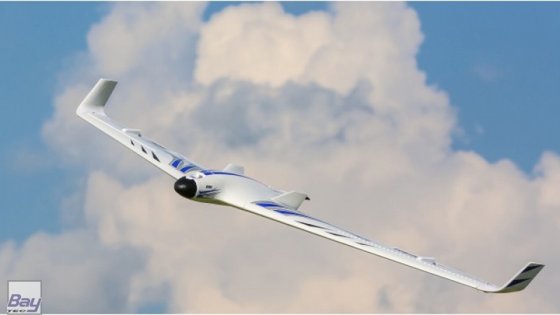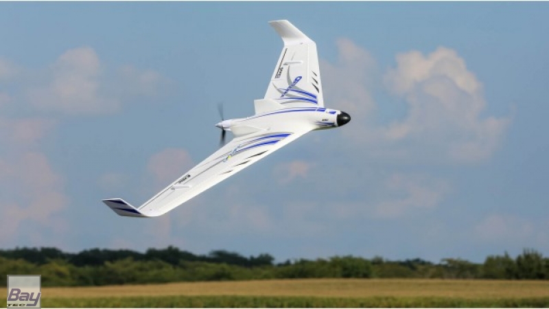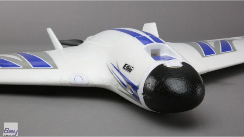 Central to the aircraft's amazing capabilities are the advanced aerodynamics that shaped its design. In addition to its efficient airfoil, winglets and fins on the fuselage help the model track true in all kinds of air. Vortex generators near the leading edge of the top of the wing, and just ahead of the elevons on the bottom of the wing, enhance slow speed stability and control. The airframe itself is constructed of carbon-reinforced, hollow-core Z-Foam™ material that keeps weight to a minimum while maintaining strength and rigidity.