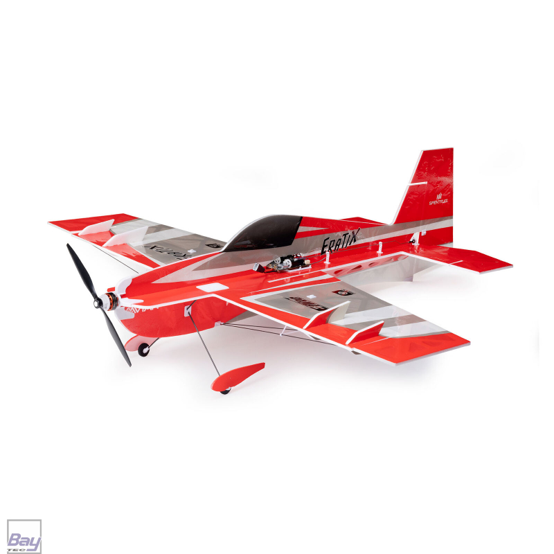 Inspiriert von den UMX™ Extra 300 und Yak 54 Flat-Foamy-Modellen, verfügt der Eratix über eine lasergeschnittene und mit Verbundwerkstoffen verstärkte Flugzeugzelle. Dadurch ist er leicht genug, um extreme 3D-Manöver in Innenräumen wie Wohnzimmern oder Konferenzräumen zu fliegen – oder fast überall im Freien. Der werkseitig installierte Brushless-Outrunner-Motor mit Prop-Saver ist mit gängigen 2S 280–350mAh Akkus kompatibel.