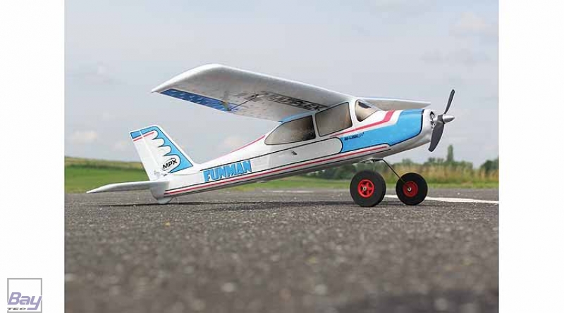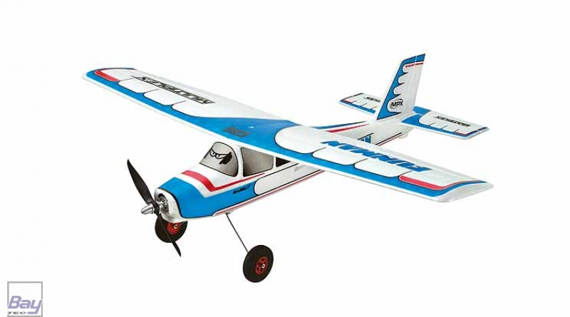 Der Hochdecker mit den großen Rädern startet auf fast jeder Wiese. Schnell in der Luft und sicher zu steuern, dank seiner gutmütigen Flugeigenschaften. Serienmäßig mit Seiten-, Höhenruder und Motorsteuerung ausgestattet. Richtig Fun macht das optionale Querruder-Upgrade Set (# 65164).Damit kann man Spaß trainieren!