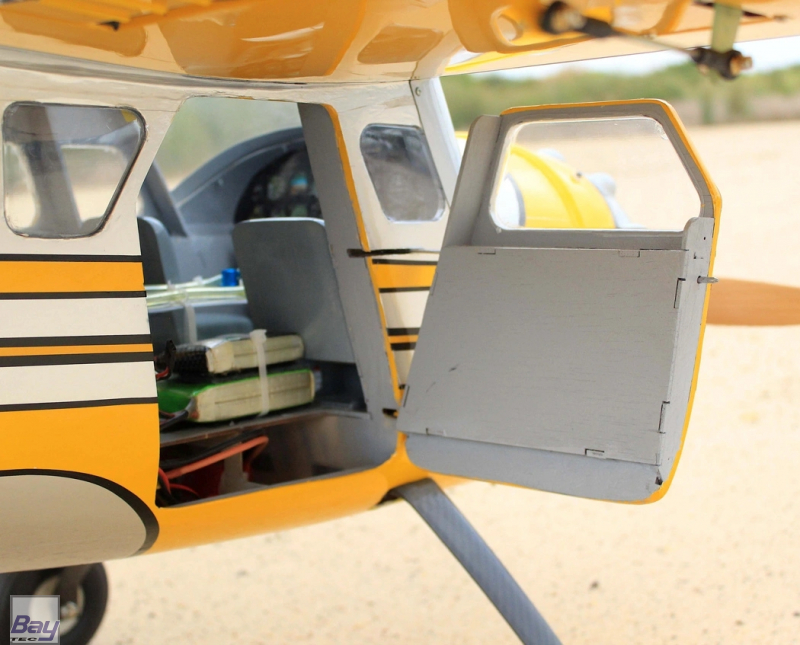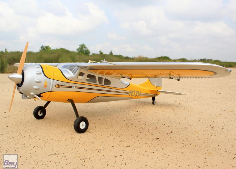 - Das maßstabsgetreue Höhenleitwerk basiert auf der Cessna 195 N9948 und wurde mit funktionalen Steuerflächen für verbesserte Pitchkontrolle und sanfteres Flugverhalten ausgestattet. Das Modell vereint maßstabsgetreuen Realismus mit moderner Leistung.