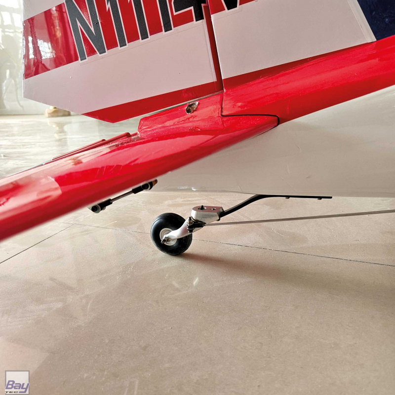 The fixed main landing gear with CNC oleo struts provides both authentic ground handling and visual realism, while the CNC aluminum tail gear completes the true-to-scale look.