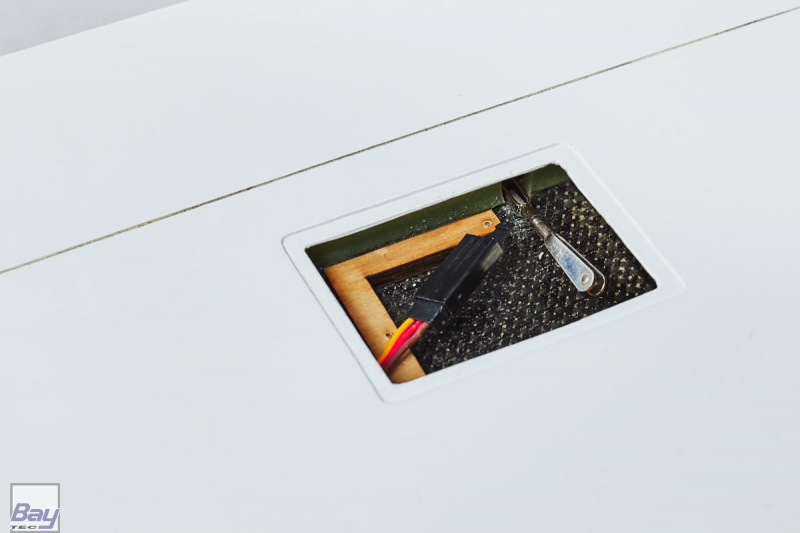 Massig Platz für die Elektronik Der Rumpf des INFINITY 300 ist speziell für den Elektro-Antrieb konstruiert. So bietet das eingebaute CNC gefräste Akkubrett ausreichend Platz für große Akkus und die benötigte Elektronik. Der eingeharzte GFK-Motorspant bietet zudem Platz für 42er Innenläufer oder Außenläufer-Motoren.