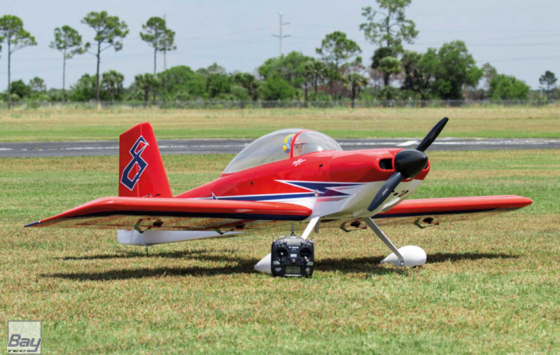Die RV-8 70cc FLS (FeatherLite Series) ist ein maßstabsgetreues Modell der berühmten Van's Aircraft RV-8. Der Designer und Weltmeister Quique Somenzini hat mit dem Design der RV-8 70cc FLS einen völlig neuen Ansatz gewählt. Eine massive Zelle mit einer Flügelfläche von mehr als 130dm² und einem Fluggewicht von 10,4 kg (23 Pfund) bietet eine so unglaublich leichte Zelle, dass es sich anfühlt, als würde man etwas fliegen, das leichter als Luft ist. Kombiniert man die extrem leichte Flächenbelastung mit wichtigen Design- und Geometriedetails des Meisters selbst, erhält man ein Flugzeug mit einem unglaublichen Flugbereich.