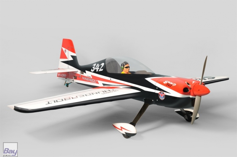 Die Sbach ist ARF-typisch fertig aus laser-geschnittenen Holzteilen aufgebaut und mit original Qualitätsfolie Folie bespannt. Die Motorhaube und Radschuhe sind aus GFK gefertigt. Diese große SBACH ist gleichermaßen ausgelegt für dynamischen Kunstflug und für 3D-Flug. Hier überzeugt das Modell durch Präzision und hohe Agilität.