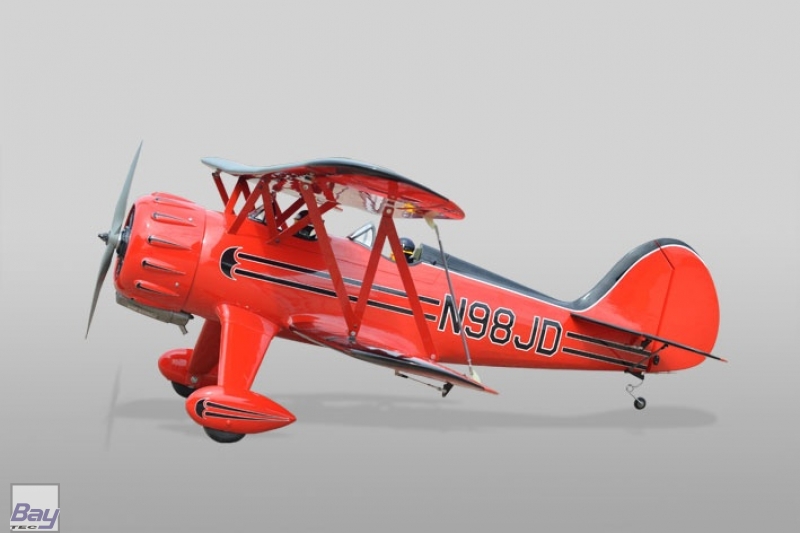 Die Motorhaube ist aus GFK gefertigt und fertig lackiert. Die Waco f5C ist komplett aus Holz hochwertig aufgebaut und mit Original Qualitätsfolie Folie bespannt. Mit den empfohlenen kraftvollen Motoren erreicht das Modell beeindruckende Flugleistung. Es lässt sich dynamisch fliegen und hängt gut am Gas.