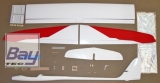 weiß eingefärbter GFK-Rumpf, Kabinenhaube GFK, strömungsoptimierte GFK-Randbögen, Flügelmittelteil mit Ansteckflächen Styro beplankt, Querruder und Wölbklappen ausgeschnitten verkastet, Servo- und Kabelschächte fertig, Servobefestigungsteile und Abdeckungen aus ABS, Dekor-Bogen, Hochstarthaken, alle Klein- und Anlenkungsteile sowie eine ausführliche Bau und Einstellanleitung.