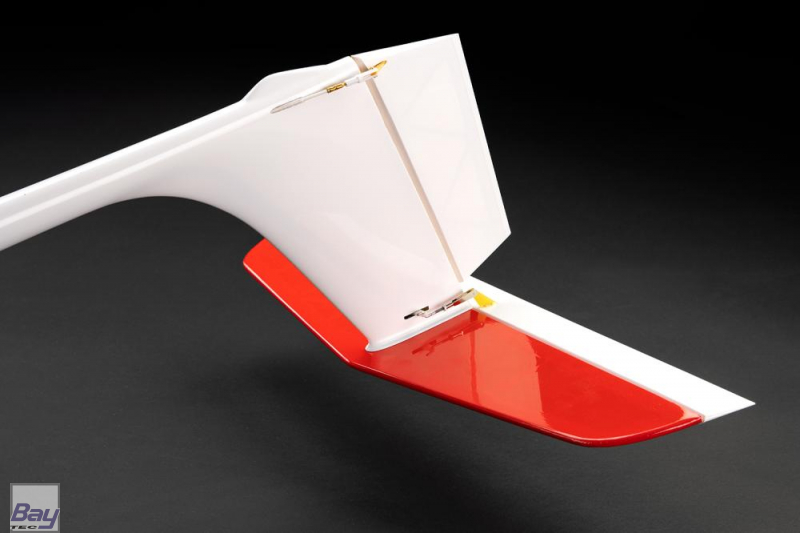 Modellbau: Rumpf und Kabinehaube GFK, leicht. Die Tragfläche ist eine Vollbalsakonstruktion mit Querrudern, die mit zwei Schrauben befestigt und durch eine Stahlsteckung verbunden sind. Das verbesserte All-Balsa-Strukturhöhenruder ist mit zwei Schrauben am Rumpf befestigt, die von einem Servo im Rumpf angesteuert werden. Das strukturelle Ruder wird durch einen Servo von der Vorderseite des Rumpfes gesteuert.