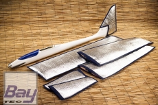 Die Transport-Taschen bestehen aus einem 3 mm dicken Schaumstoff mit einer glatten, reflektierenden Oberfläche (PET-Folie laminiert und mit Mesh verstärkt). Das gesamte Paket ist mit Textilband eingefasst. Die Taschen eignen sich besonders für die Lagerung und den Transport der Modelle. Wenn  das Modell dem Sonnenlicht ausgesetzt ist, reduziert sie die Temperatur des Modells, wodurch Beschädigungen bzw. Verwindungen vermieden werden.