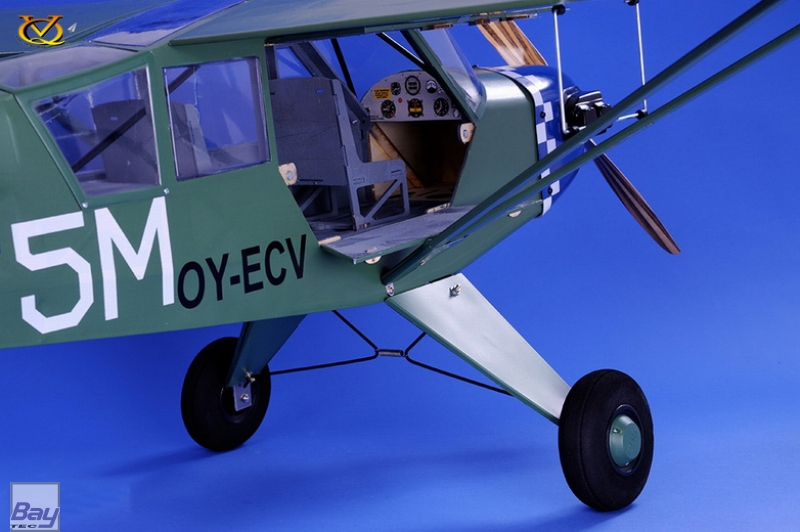Besonderen Wert wurde bei der Entwicklung dieser Piper L4 Grasshopper auf Detailtreue gelegt. Entstanden ist eine wunderschöne Piper L4, die vor allem auch durch die hervorragenden Flugeigenschaften überzeugt. Das Modell eignet sich perfekt für Elektroantrieb. Wahlweise ist aber auch der Einbau eines Verbrennungsmotors mit ca. 7,5 - 11,0cc Hubraum möglich. Die Piper L4 Grasshopper glänzt mit vielen innovativen Merkmalen. Auf der Rumpfseite befindet sich eine riesige, doppelt aufklappbare (magnetische) Türkonstruktion für einfachen Zugang (z.B. Akkuwechsel). Das serienmäßige Fahrwerk wurde dem Original nachempfunden. Wenn das Modell auf unbefestigten Pisten geflogen werden soll, können jederzeit größere Räder montiert werden. Das Modell eignet sich auch sehr gut für den Wasserflug oder Winterflug auf Schnee. Passende Schwimmer hierfür finden Sie in unserem Sortiment.