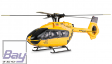 Dieser lizenzierte Scale-Nachbau steht dem Original in nichts nach: Alle Details wurden wirklichkeitsgetreu umgesetzt, sodass beispielsweise Nieten, Beschriftung, Lackierung, Positionslichter, Griffe, Antennen, der Fünfblattrotor und sogar der Fenestron-Heckpropeller exakt dem echten Hubschrauber entsprechen. Auch die technische Ausstattung lässt keine Wünsche offen. Das Modell ist mit bürstenlosen Motoren sowohl im Hauptantrieb als auch im Fenestron ausgestattet. Der Schwebeflug wird durch eine barometrische Elektronik und einen Bodensensor unterstützt. So kann sich der Pilot auf das Fliegen konzentrieren, ohne ständig auf die Flughöhe achten zu müssen. Das Modell bietet zudem eine Auto-Start/Lande-Funktion, und die Servowege der Taumelscheibe können in drei Stufen (von Einsteiger bis Profi) eingestellt werden. Die Fernsteuerung ist auf Mode 1 und Mode 2 umschaltbar, verfügt über eine Notstopptaste, die den Motor sofort abschaltet, falls doch mal etwas außer Kontrolle geraten sollte. Zusätzlich kann jede Funktion manuell getrimmt werden. Eine automatische Gyrokalibrierung sorgt für ein genügsames Flugverhalten. Dank der integrierten Autostabilisierung, die dem Flugverhalten eines Koaxialhubschraubers ähnelt, ist dieses Modell auch für Einsteiger hervorragend geeignet und begeistert ebenso erfahrene Piloten.