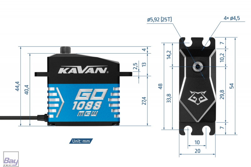 Das superstarke und schnelle wasserdichte programmierbare Digital Standard-Servo 85g mit Brushless-Motor, magnetischem Encoder, 4-Kugellager-Stahl-Getriebe für den Einsatz vor allem in großen Flugmodellen, Hubschraubern, RC-Off-Road-Autos 1:8- 1:5, RC-Motorschiffen, Segelschiffen u.ä. . Für eine perfekte Kühlung auch bei hoher Belastung und zum Schutz vor widrigen Umwelteinflüssen ist das Servo in einem wasser- und staubdichten Aluminiumgehäuse (Standard IP67) untergebracht.